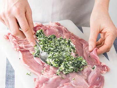 Coniglio Alle Erbe: Unirvi un trito di scalogno ed erbe aromatiche, mescolando e far marinare cosï 2 ore.